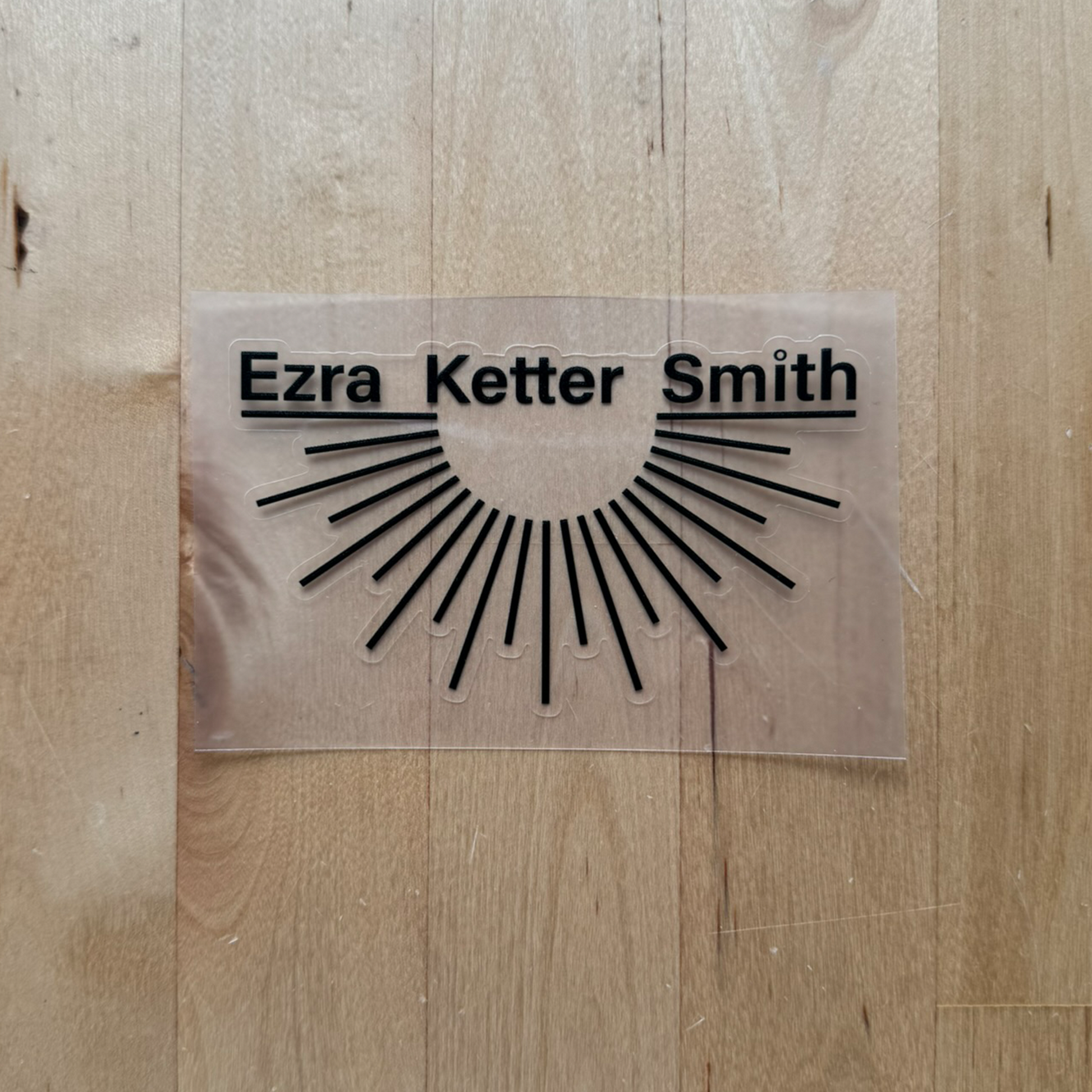 Transparent "Ezra Ketter Smith" logo decal stickers. Made from a high-quality UV-resistant PVC Vinyl. These stickers come in multiple variations and colors.