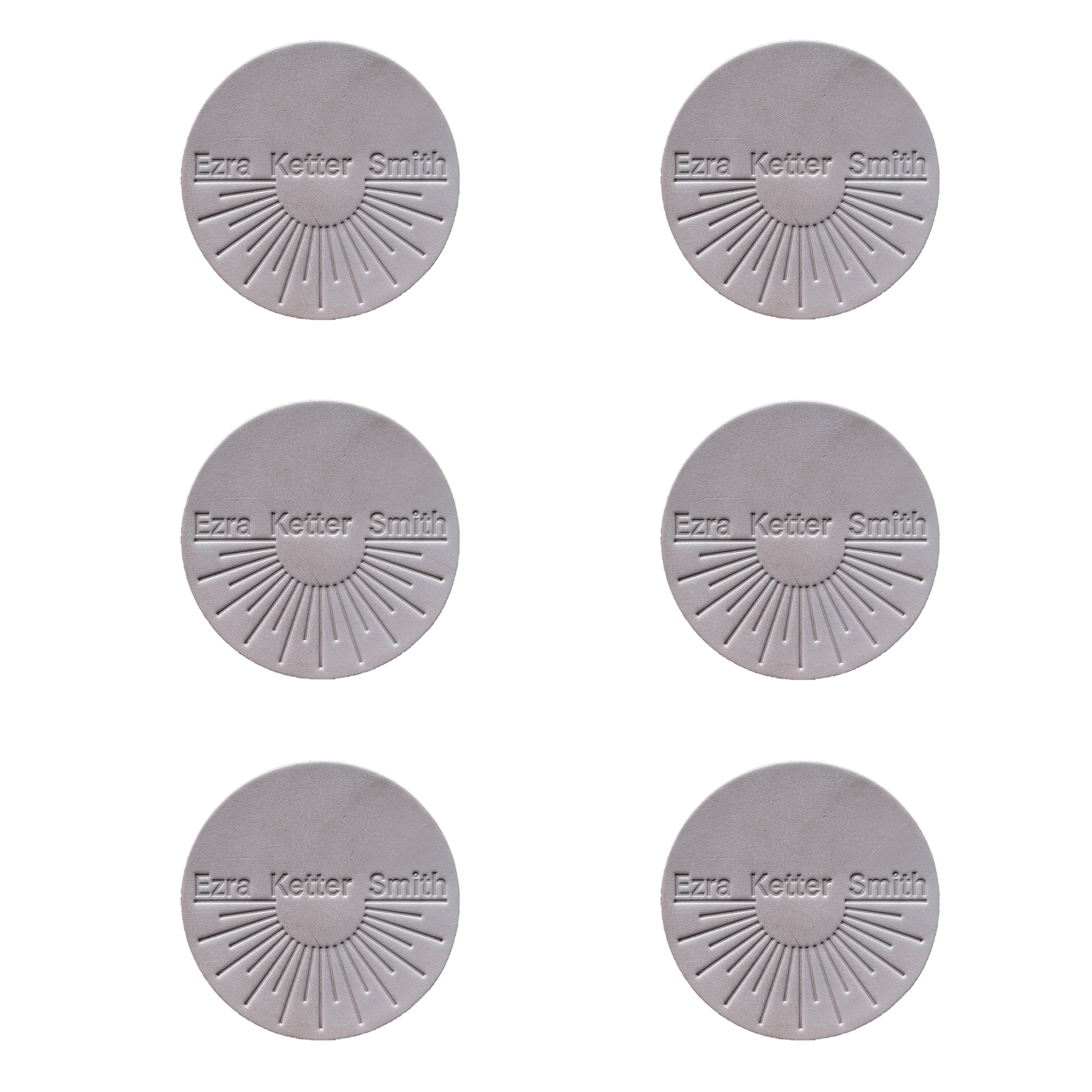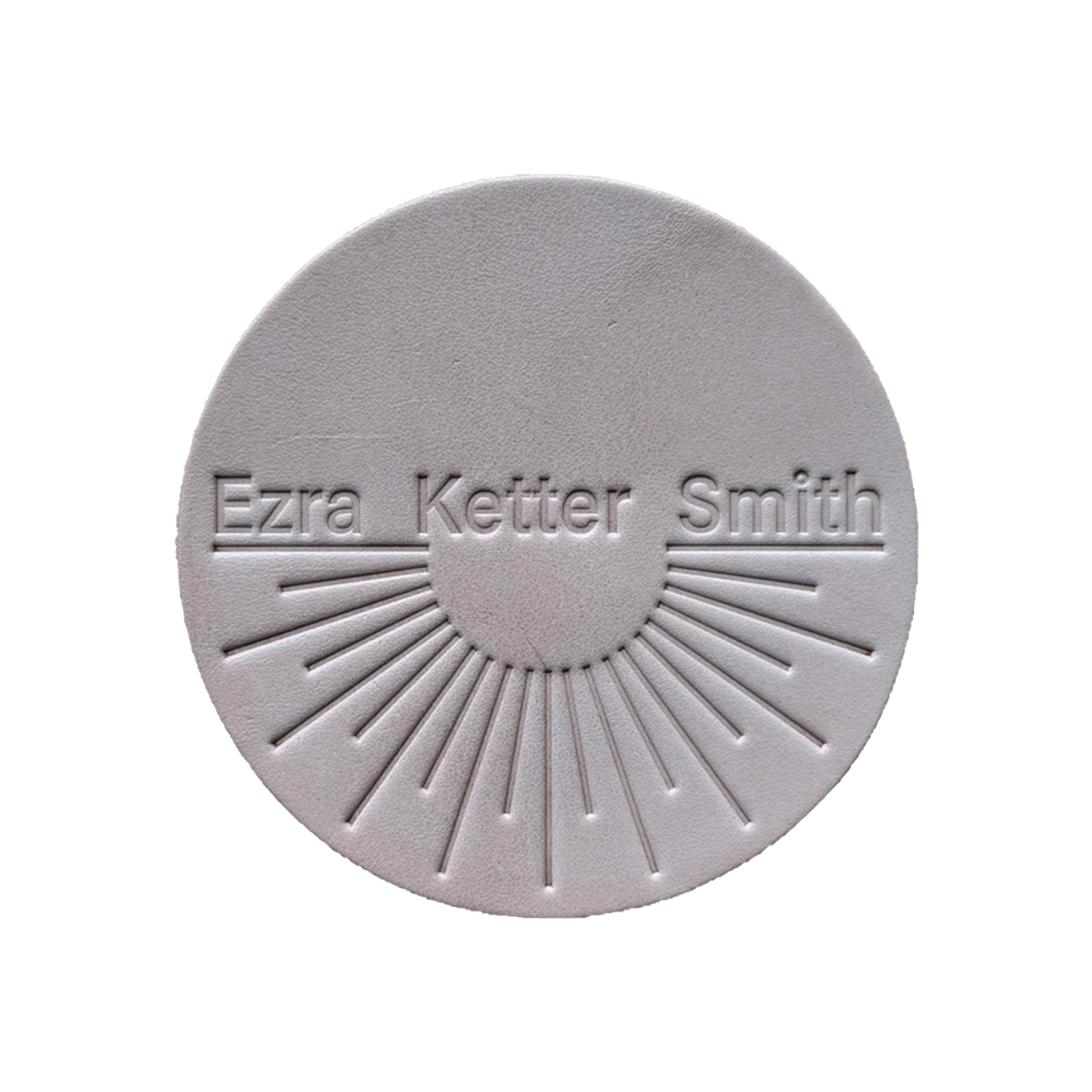 Natural Vegetable Tanned leather coaster. Made from a premium 3mm Italian Vegetable Tanned leather, and debossed with the "Ezra Ketter Smith" brand logo. Each coaster measures 10cm in diameter and will wear and darken over time.